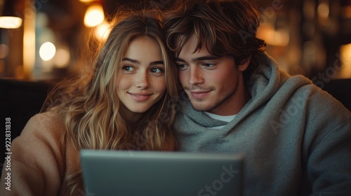 Young Couple Sharing A Playful Moment With A Laptop On A Comfortable Sofa, Enjoying Each Other'S Company