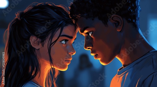 Young Couple Sharing an Intimate Moment in a Softly Lit Setting During a Late Evening in a Cozy Indoor Space