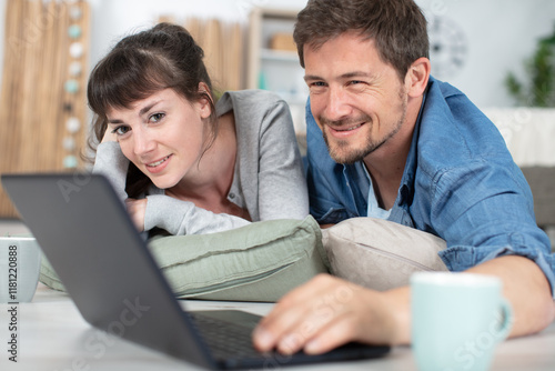 young couple using a laptop computer
