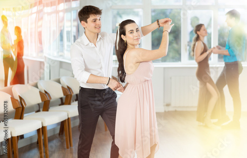 Young couples learning to dance latin american dances in a dance studio