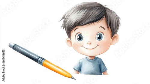 Young creative boy sits thoughtfully with two sharpened pencils ready to start new drawing project on blank sheet of paper capturing moment of artistic inspiration