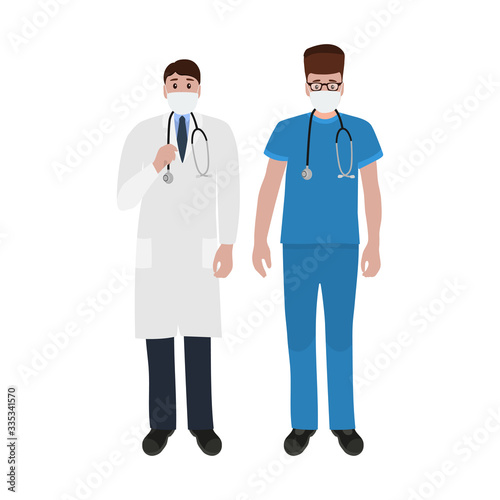 Young doctor with a stethoscope in a hospital. Cartoon flat, vector illustration