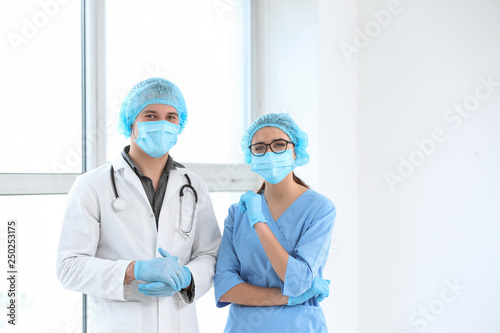 Young doctors in clinic near window