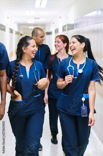 Young doctors laughing and enjoying working together