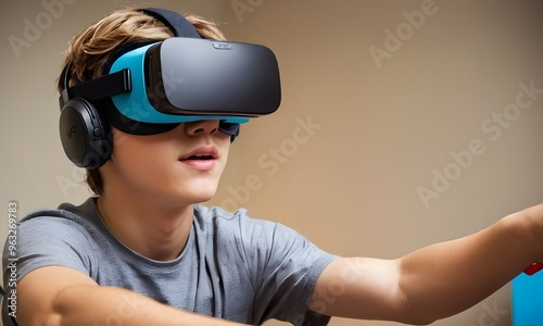 Young Educated Man Engaged with Virtual Reality Headset, Generative Ai