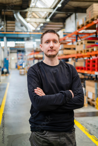 Young employee with arms crossed in industry