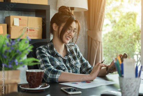 Young entrepreneur, teenager business owner work at home, alpha generation life style, online business conceptual