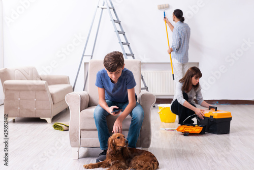 Young family doing home renovation