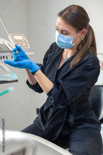 Young female dentist at work. Dentistry. Treatment of teeth.