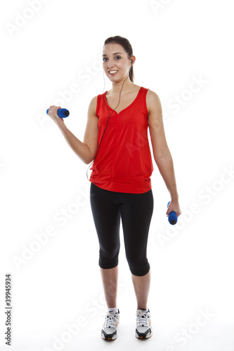 Young fit woman exercising with weights