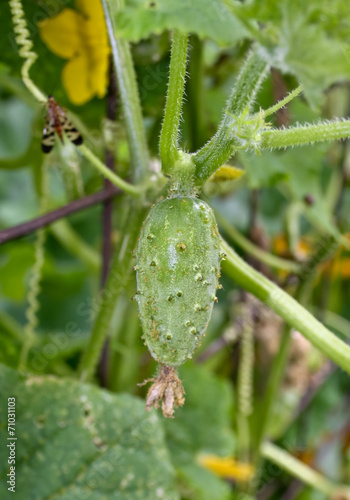 Young fruit on the vine planting cucumber - Cucumis sativus.