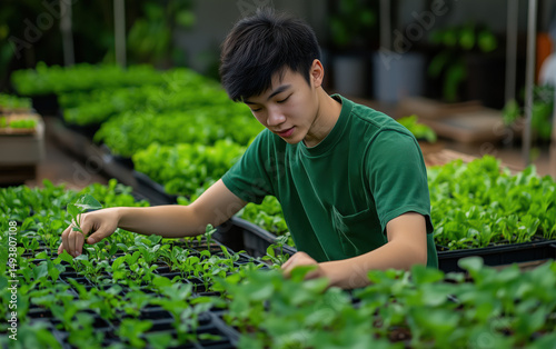 Young Gardener Nurturing Future Crops in a Greenhouse