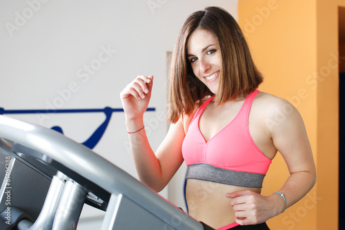young girl doing legs exercise at gym.