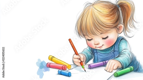 Young Girl Drawing with Colorful Markers on Blank Paper