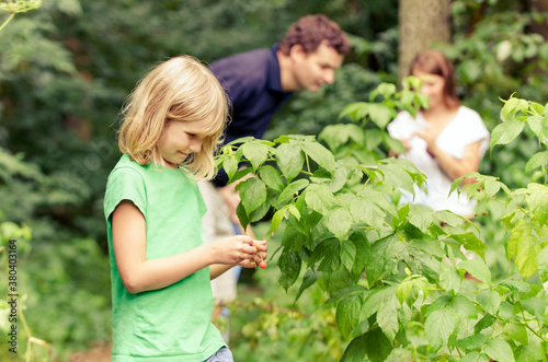 young girl picking berries