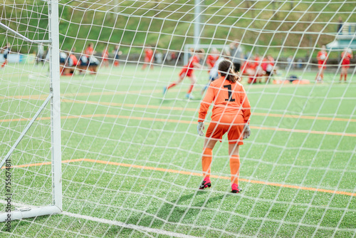 Young goalkeeper waiting in goal during a soccer match