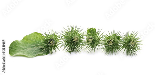 Young green burdock isolated on white background