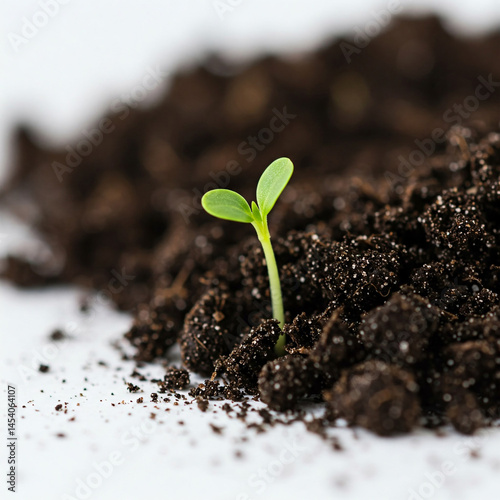 Young Green Plant Growing in Fresh Soil on Neutral Background – Concept Image Representing Growth, Sustainability, Ecology, and New Beginnings