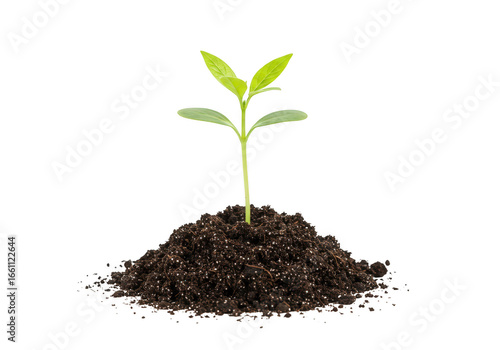 Young green sprout growing from soil isolated on transparent background