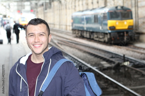 Young guy in train station
