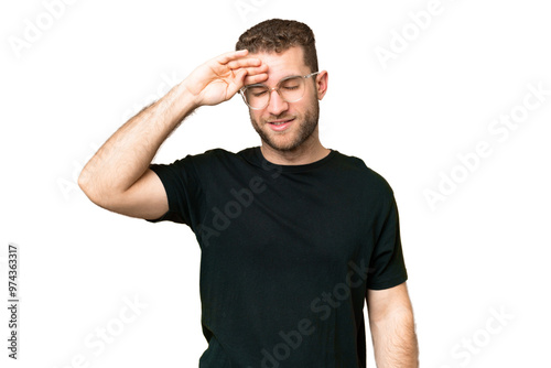 Young handsome blonde man over isolated chroma key background with tired and sick expression