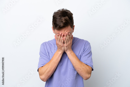 Young handsome Brazilian man isolated on white background with tired and sick expression