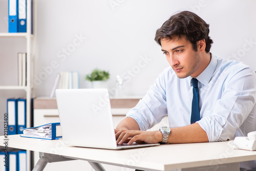 Young handsome businessman working in office