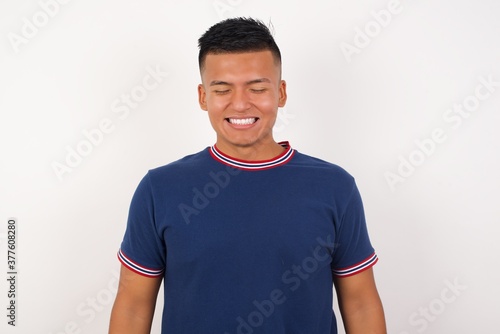 Young handsome hispanic man wearing casual t-shirt standing over white isolated background very happy and excited about new plans.