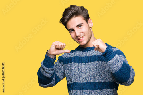 Young handsome man over isolated background looking confident with smile on face, pointing oneself with fingers proud and happy.