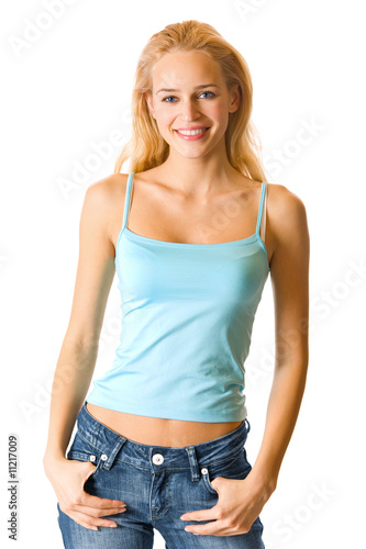 Young happy smiling beautiful woman, isolated on white