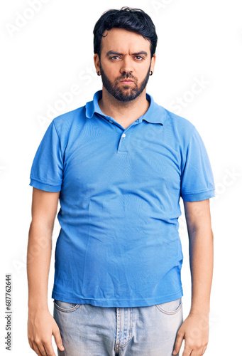 Young hispanic man wearing casual clothes depressed and worry for distress, crying angry and afraid. sad expression.