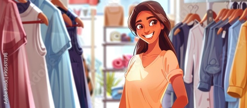 Young hispanic shopkeeper woman smiling happy standing at clothing store