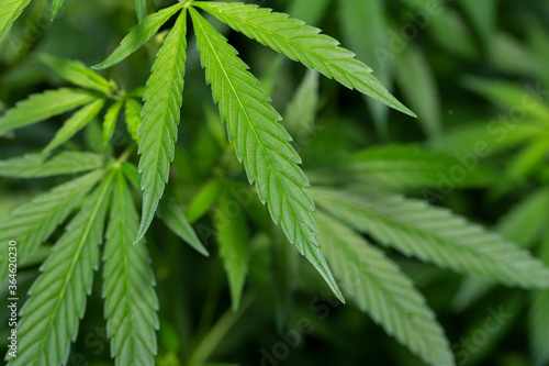 Young leaf of marijuana plant detail. Selective focus.