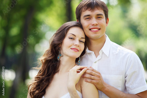 Young love Couple smiling under blue sky