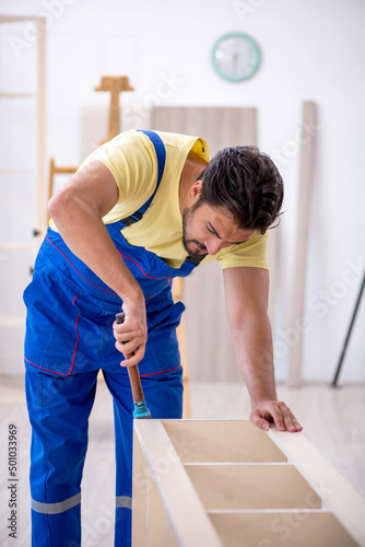 Young male carpenter working at home