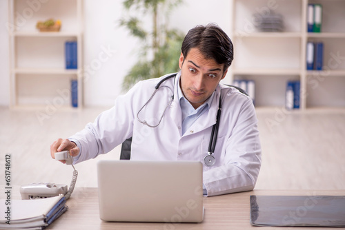 Young male doctor in telemedicine concept