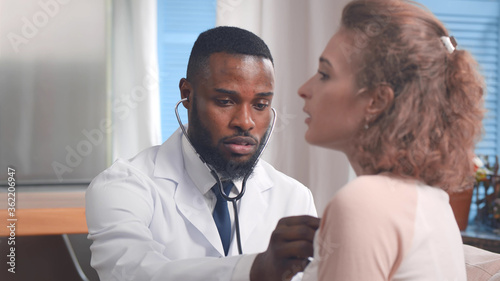 Young male doctor visiting woman patient at home