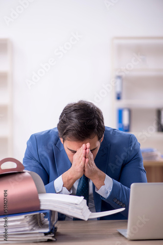 Young male employee eating cake at workplace