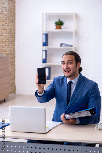 Young male employee working at workplace