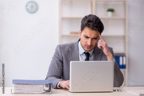 Young male employee working in the office