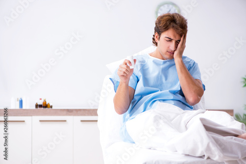 Young male patient lying on couch in hospital