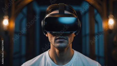 Young man in VR glasses.