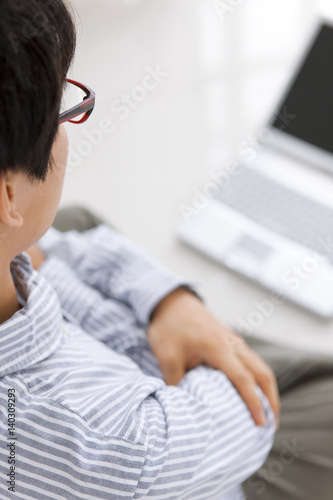 Young man looking at laptop