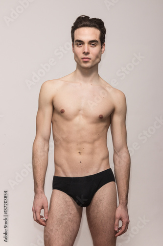 young man model posing shirtless body fit slim