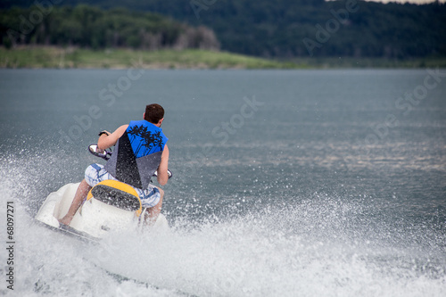 Young Man piloting a personal water craft