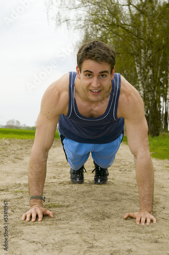 young man press up