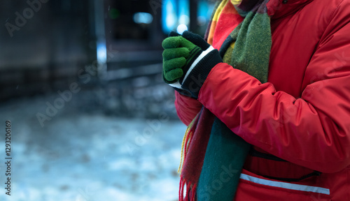 Young Man Shivering at a Bus Stop While Waiting for Public Transport in Cold Weather.