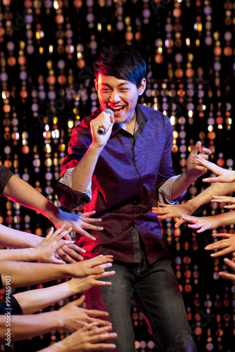 Young man singing Karaoke