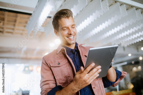 Young man using a tablet in the office of a startup company
