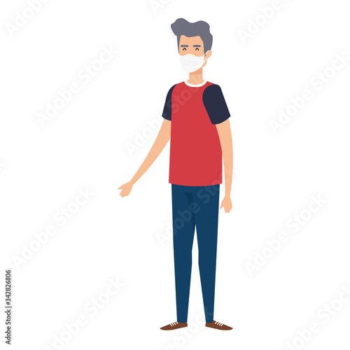 young man using face mask isolated icon vector illustration design